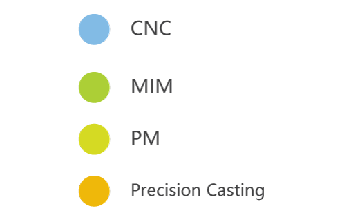MIM excels at producing components that require precise and tight tolerances, especially those with complex geometries. Achieving these stringent tolerances is one of the standout features of MIM, offering great value for such demanding designs.